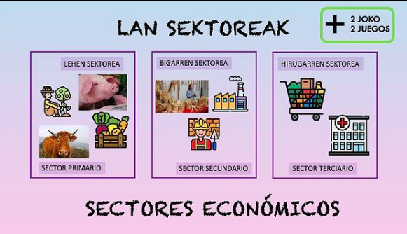 ✔️Lan sektore bakoitza azaltzen duen liburuxka (lehen sektorea, bigarren sektorea eta hirugarren sektorea).